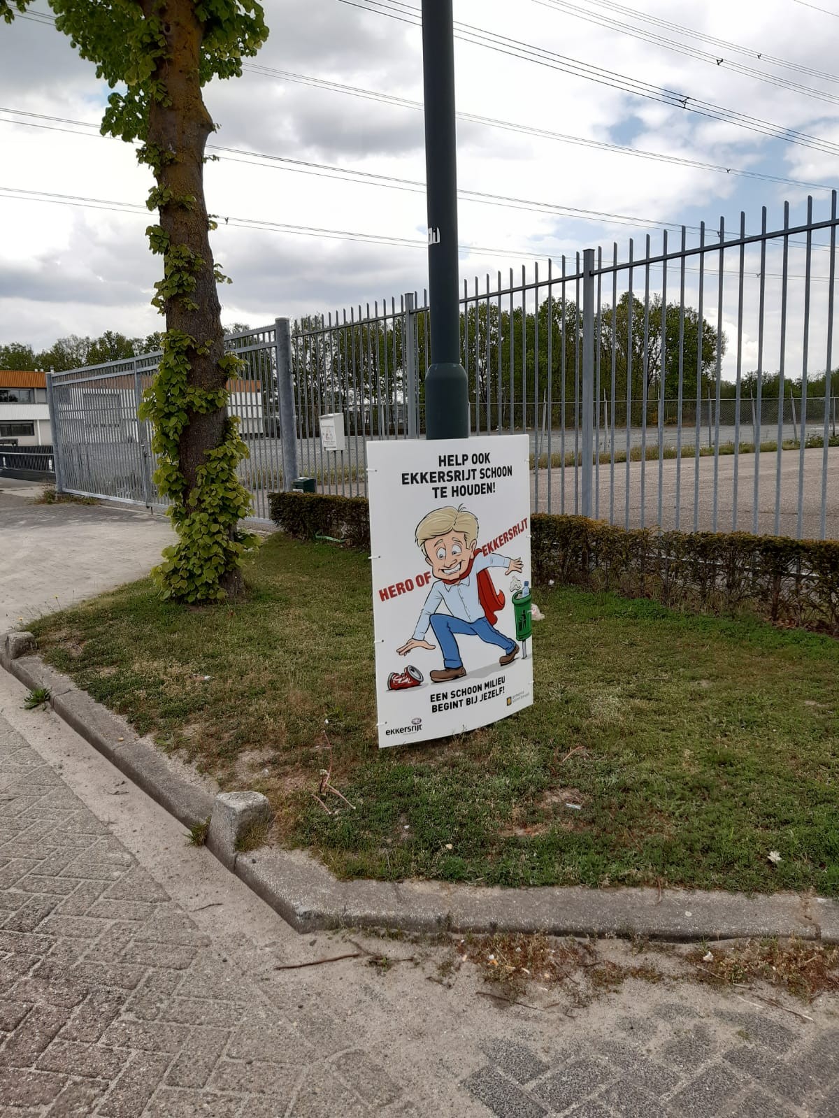 Ook op Ekkersrijt-Oost en bij de Visplas Ekkersrijt treft u de borden aan. De gemeente wil, in combinatie met alle ondernemers op Ekkersrijt, het zwerfvuil terugdringen.